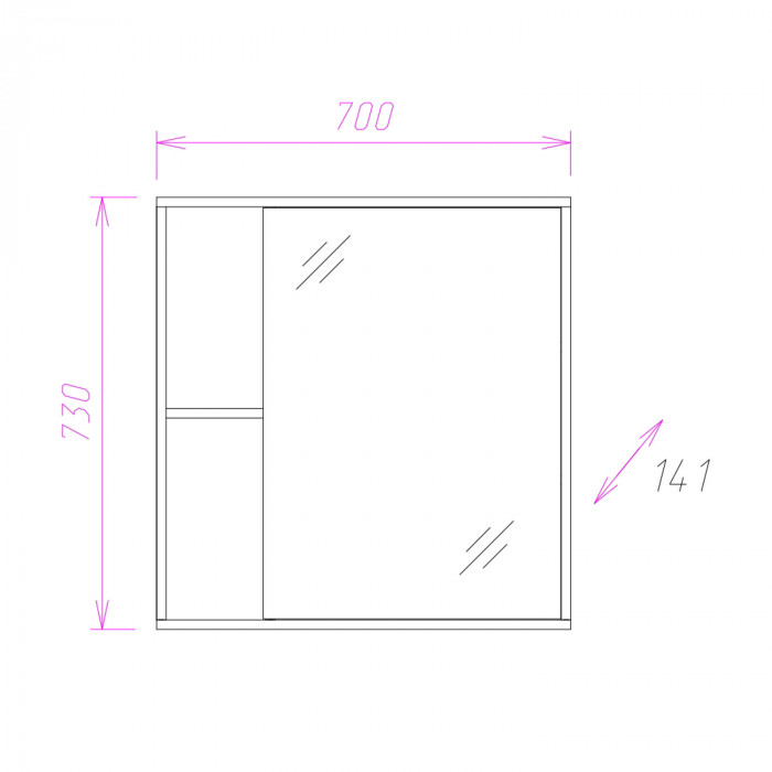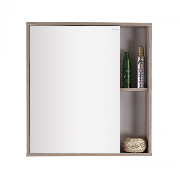 Шкаф максимально удобен в использовании: пространство за зеркальной дверцей с механизмом плавного закрывания, разделенное двумя горизонтальными полочками, позволяет компактно разместить бытовые принадлежности. 2 открытые полочки созданы специально для хранения часто используемых вещей.
