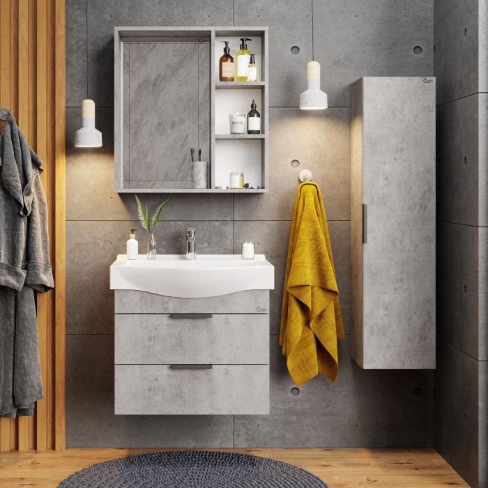 Шкаф-зеркало Onika Девис 65 бетон чикаго, универсальный 206542 Россия подвесной прямоугольная ламинирование матовое ЛДСП ламинирование установка не предусмотрена - - - - - - Навесной зеркальный шкаф для ванной комнаты Onika ДЕВИС 65 отличается чёткой геометрией форм и создан для тех, кто ценит современный лаконичный дизайн, холодный брутальный эффект бетона, а также безупречное исполнение.