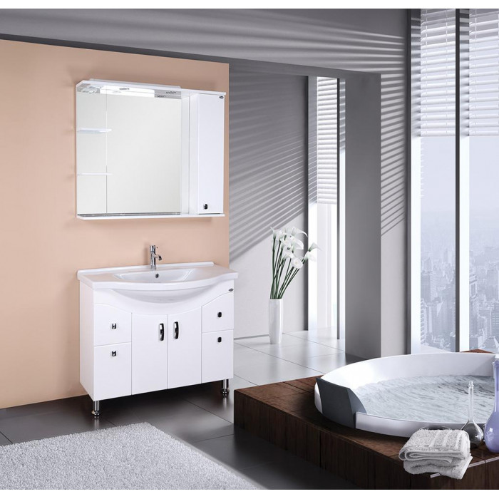 Источник света шкафа - два врезных светодиодных модуля, дополненных механическим выключателем и встроенной розеткой. Корпус шкафа-зеркала выполнен из ЛДСП, фасад - из ЛМДФ в пленке, устойчивых к механическим воздействиям, перепадам температур и высокой влажности.