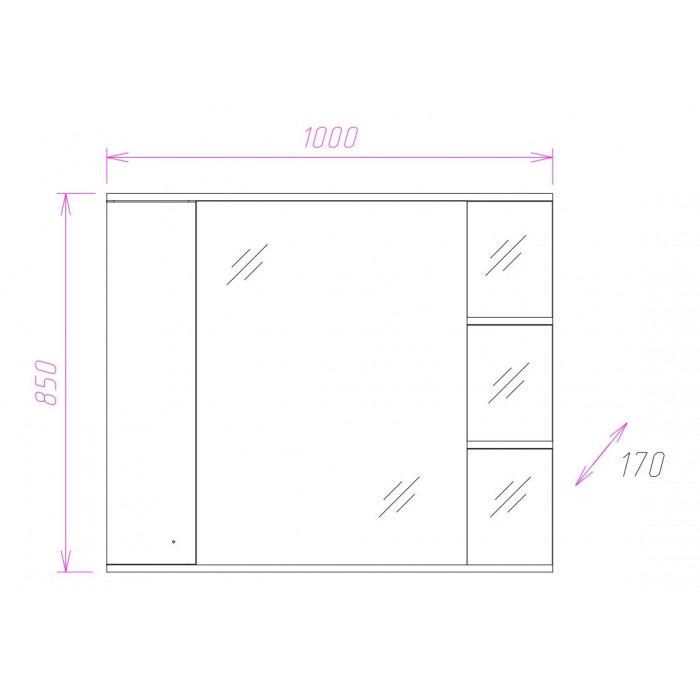 Шкаф-зеркало Onika Эльбрус 100 белый, правый, с подсветкой 210004