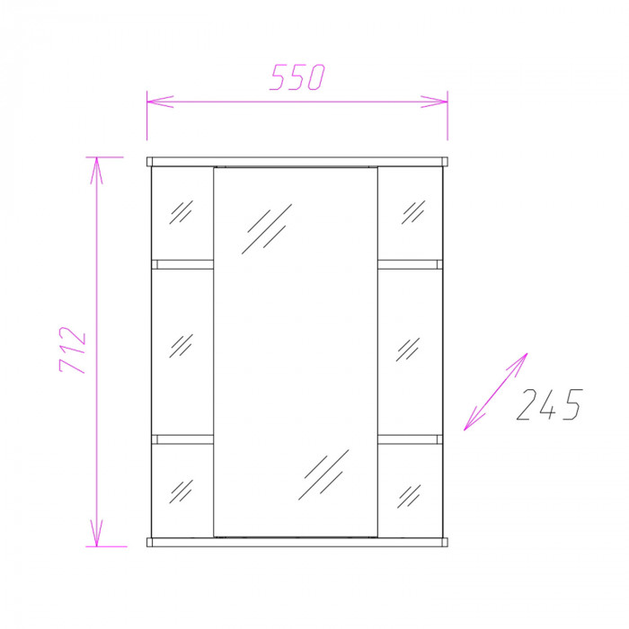 Корпус шкафа-зеркала выполнен из ЛДСП, фасад - из ЛДСП и ЛМДФ в пленке, устойчивых к механическим воздействиям, перепадам температур и высокой влажности.
