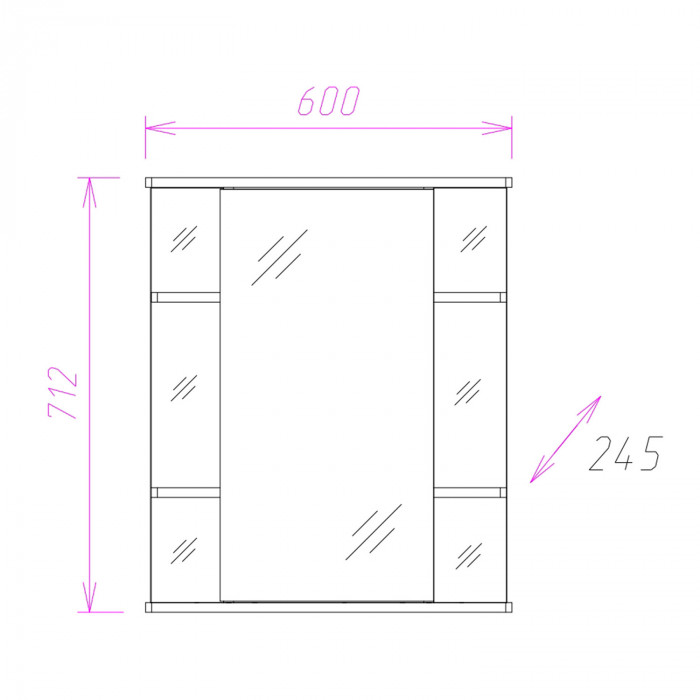 Корпус шкафа-зеркала выполнен из ЛДСП, фасад - из ЛДСП и ЛМДФ в пленке, устойчивых к механическим воздействиям, перепадам температур и высокой влажности.