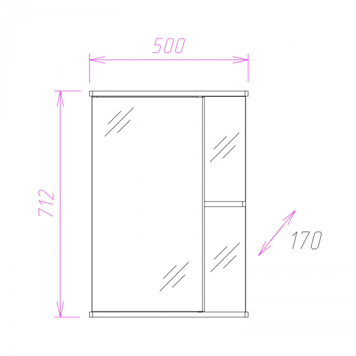 Корпус шкафа-зеркала выполнен из ЛДСП, фасад - из ЛДСП и ЛМДФ в пленке, устойчивых к механическим воздействиям, перепадам температур и высокой влажности.