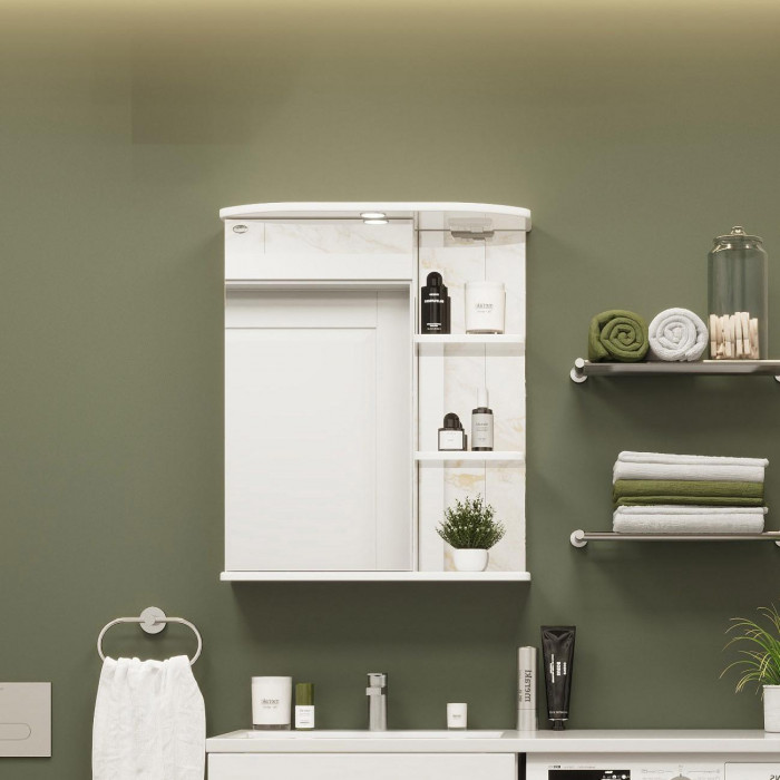 Шкаф-зеркало Onika Карина 55 белый, левый, с подсветкой 205512
