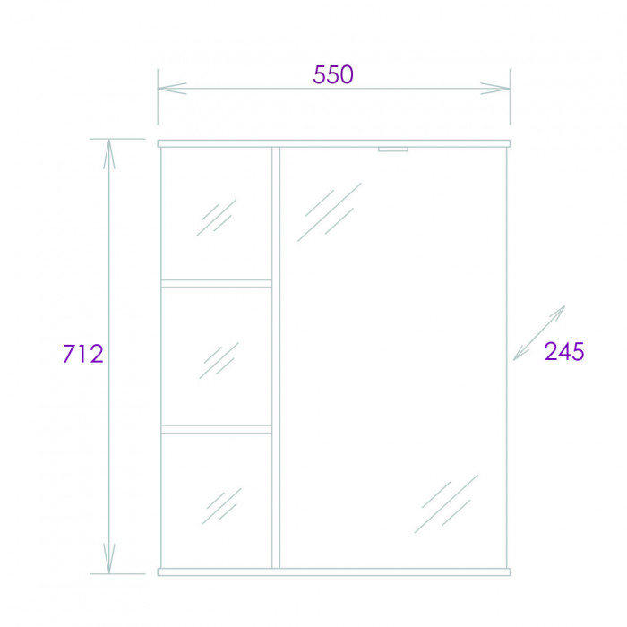 Открытые полочки слева обеспечивают быстрый доступ к часто используемым аксессуарам, а пространство за распашной зеркальной дверцей с механизмом плавного закрывания, разделенное полочкой, станет удобным местом для хранения различных бытовых принадлежностей.