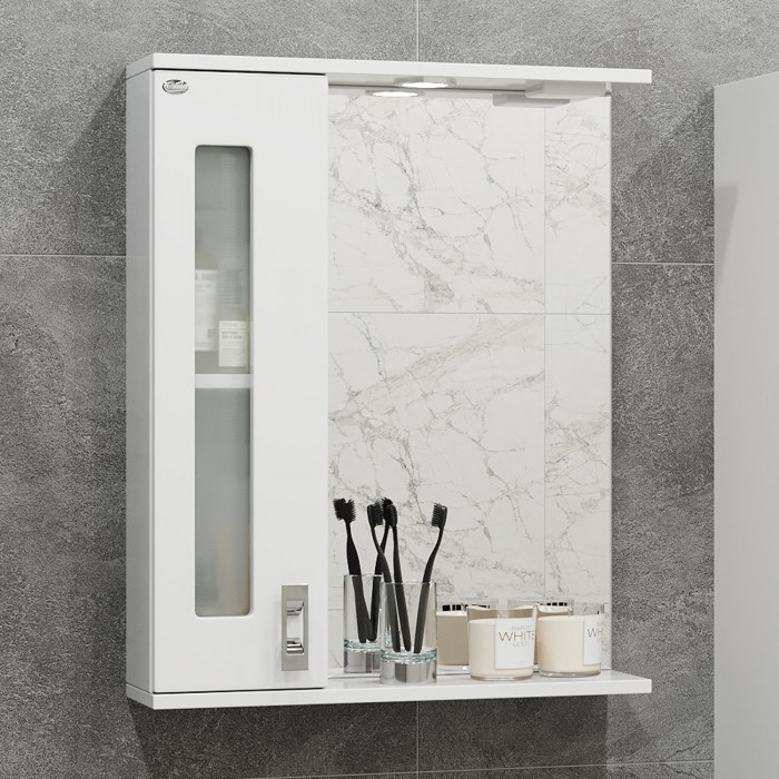 Шкаф-зеркало Onika Кристалл 58 белый, левый, с подсветкой 205817 Россия подвесной прямоугольная пленка глянцевое ЛДСП ламинирование в комплекте с доводчиком; без доводчика ЛДСП светодиодная 4 Вт 4500 К механический Стильное и красивое зеркало со шкафчиком Onika КРИСТАЛЛ 58 сможет гармонично вписаться в любой интерьер.