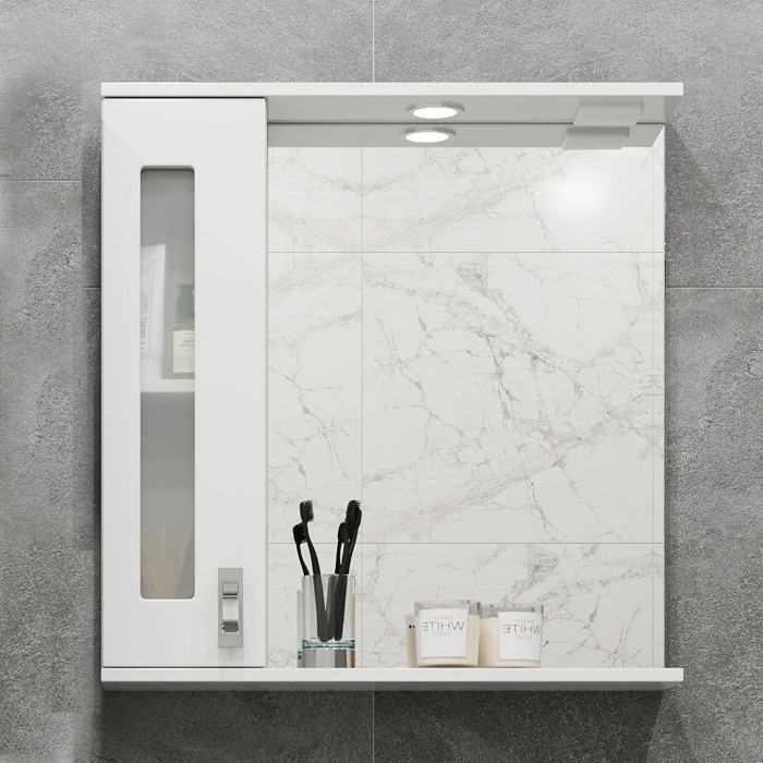 Шкаф-зеркало Onika Кристалл 67 белый, левый, с подсветкой 206705