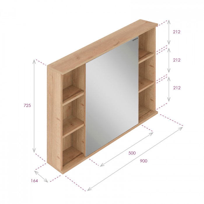 Шкаф-зеркало Onika Легран 90 дуб галифакс, универсальный 209031