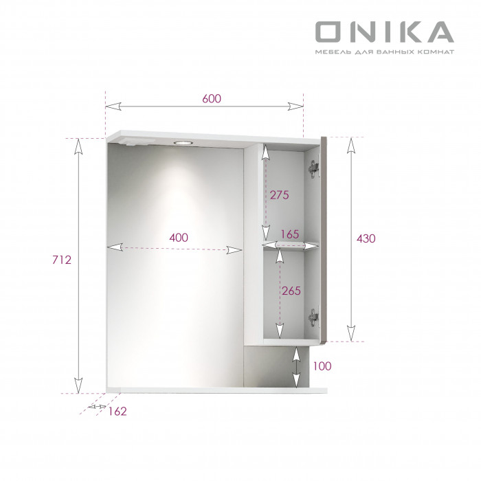 Шкаф-зеркало Onika Марви 60 мокко, правый, с подсветкой 206088