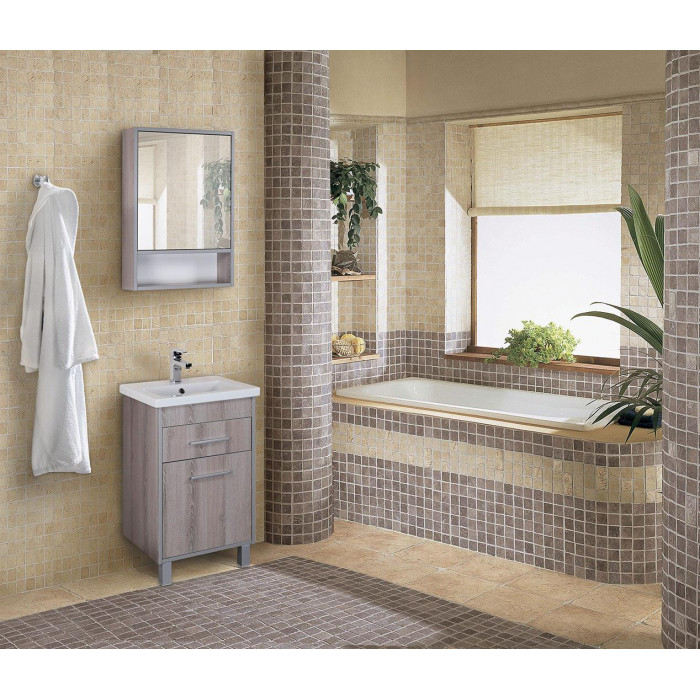 Лаконичные прямоугольные формы, осветленная кромка по краям и расцветка фактурного дерева - все это делает навесной шкаф Onika НАТАЛИ 50.00 настоящим украшением ванной комнаты.