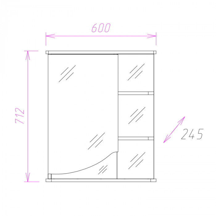 Шкаф-зеркало Onika Виола 60 белый, правый, с подсветкой 206004