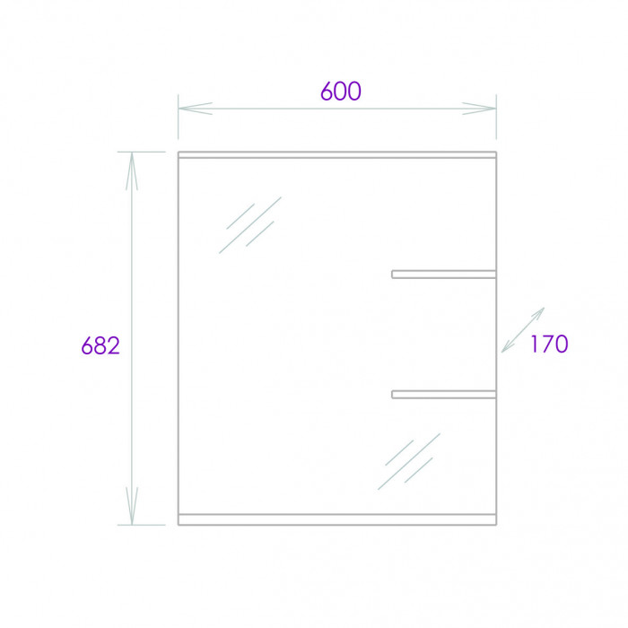Размер зеркала 60 х 17 х 68 см.