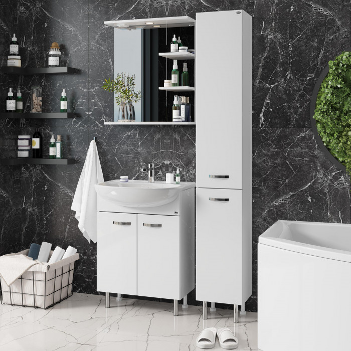 Основа для зеркала выполнена из ЛДСП, полка и козырек - из МДФ в пленке, устойчивых к механическим воздействиям, перепадам температур и высокой влажности