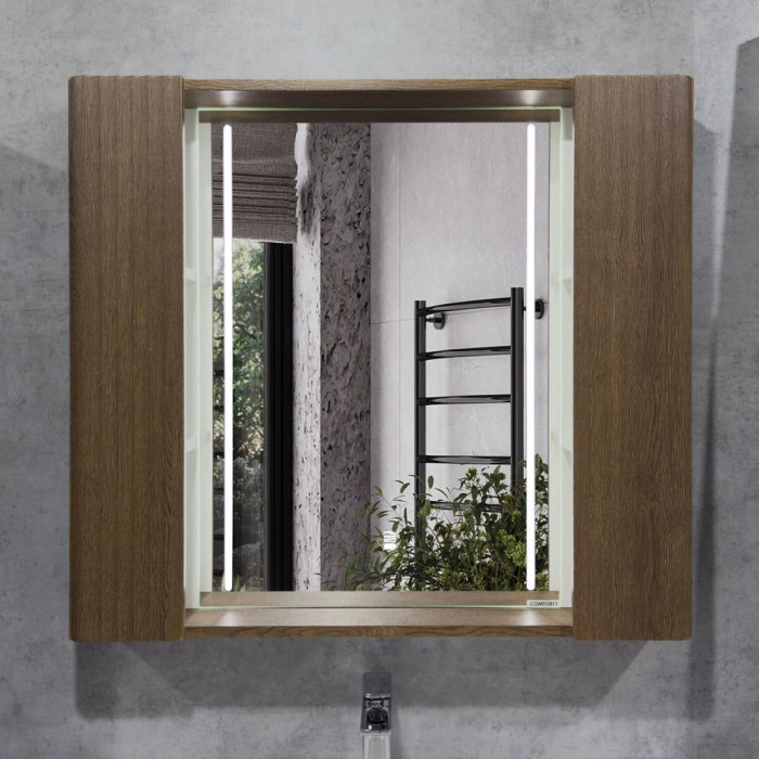 Зеркало-шкаф Comforty Ангара-90 дуб темно-коричневый с LED подсветкой и антизапотеванием 00-00019939