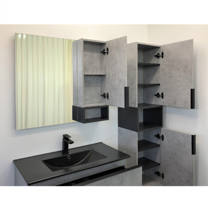 Зеркало-шкаф Comforty Франкфурт 90 бетон светлый 00-00006504 ВЛДСП матовое ВЛДСП матовое черный металл Подвесной Россия Гарантийный срок 2 года Производитель: Comforty