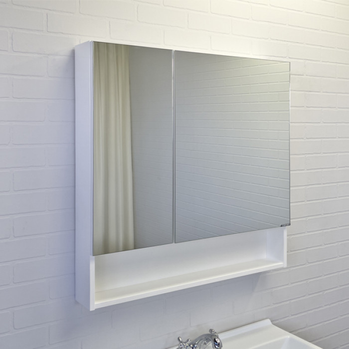Зеркало-шкаф Comforty Никосия-80 белый глянец 00-00011198 ВЛДСП глянцевое Подвесной Россия Гарантийный срок 2 года Створки оснащены петлями с плавным закрыванием. Высококачественное зеркальное полотно с амальгамой на основе серебра. Обе боковые створки зеркала открываются наружу. За широкой створкой две горизонтальные полки, за узкой одна. На нижней внешней полке можно расположить невысокие принадлежности для умывания.