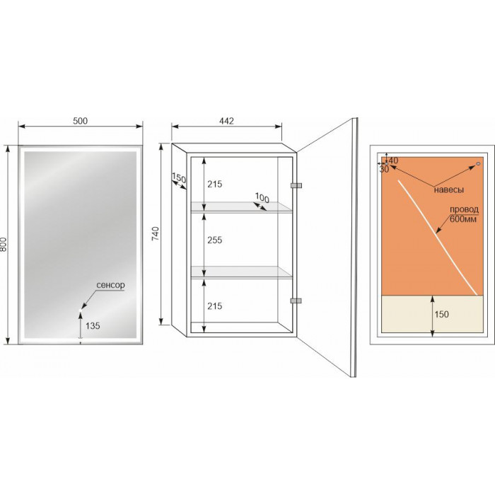Зеркало-шкаф Style Line КВАРТЕТ 50*80 с подсветкой, сенсор на зеркале СС-00002382
