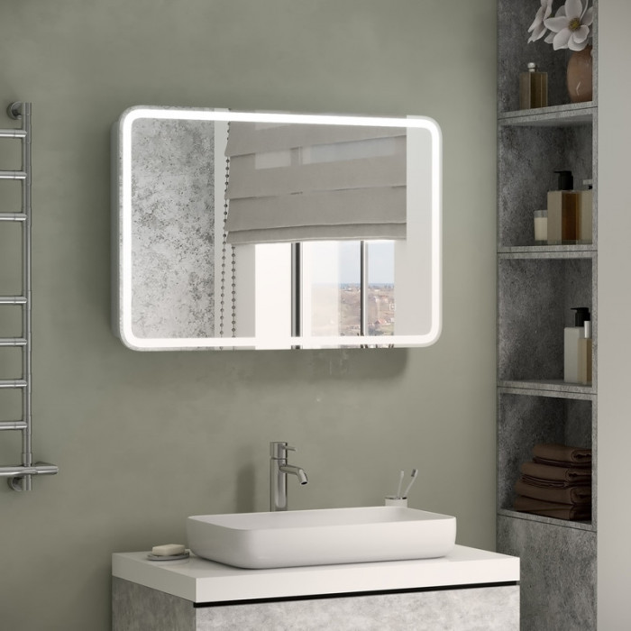 Зеркало-шкаф CONTINENT Tokio Led 900х530 с розеткой, сенсор на касание CONTINENT МВК010 2 года Россия