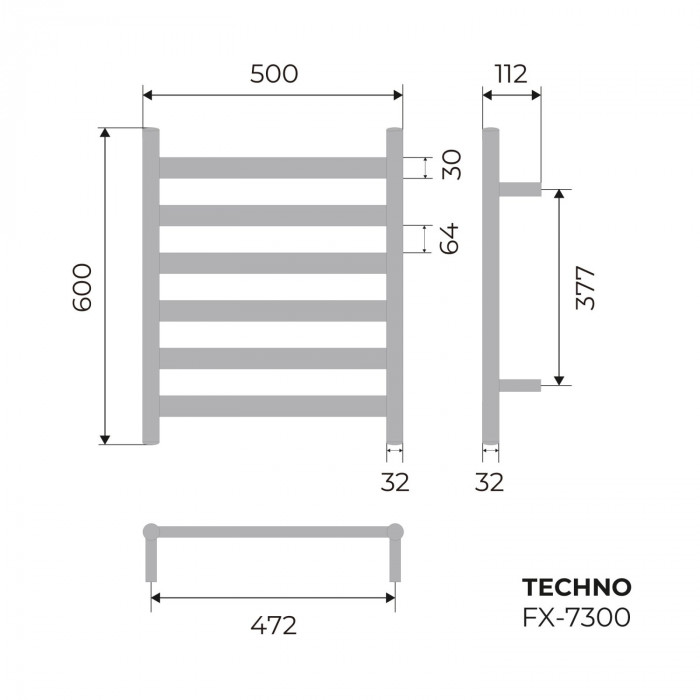 Полотенцесушитель электрический Fixsen TECHNO 600х500 хром FX-7300 хром Мощность:95 Вт; Температура нагревательного порвода: 55 С0; Шнур 1,5 м Китай 5 лет