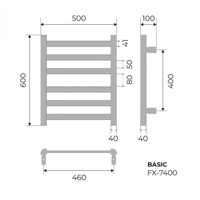 Полотенцесушитель электрический Fixsen BASIC 600х500 черный FX-7400B