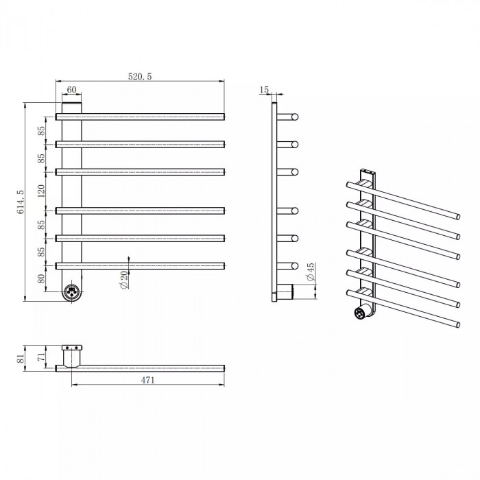 Полотенцесушитель электрический AQUAme AQM3116BG 520*624 c терморегуляторм, цвет: золото шлифованное.