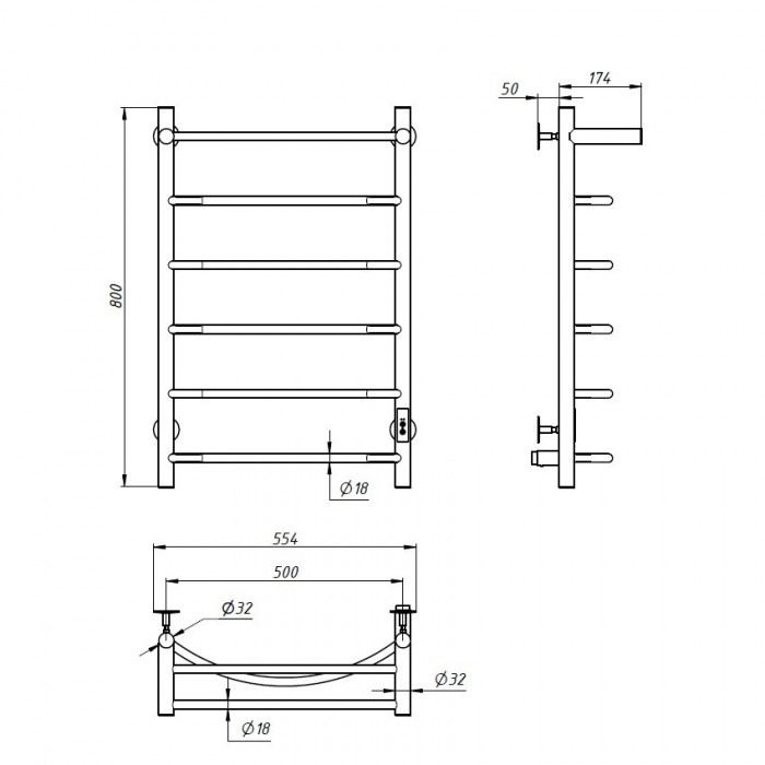 Полотенцесушитель электрический Comfysan Classic EC-8 80/50 с полкой, хром