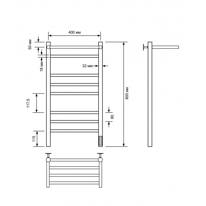 Полотенцесушитель электрический Comfysan Luce EC-8 80/40 с полкой, белый