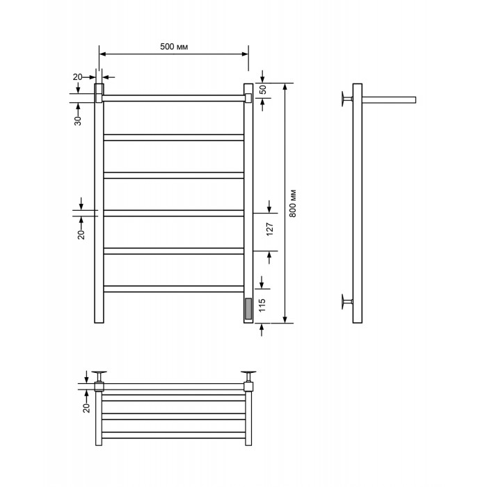 Полотенцесушитель электрический Comfysan Marte-K EC-6 80/50 с полкой, хром 012618 Межосевое расстояние (см) 50 Лесенка полированное металлическое Хром слева или справа Электрический Россия Полотенцесушитель электрический с/т Comfysan Marte-K EC-6 80/50 с полкой, хром