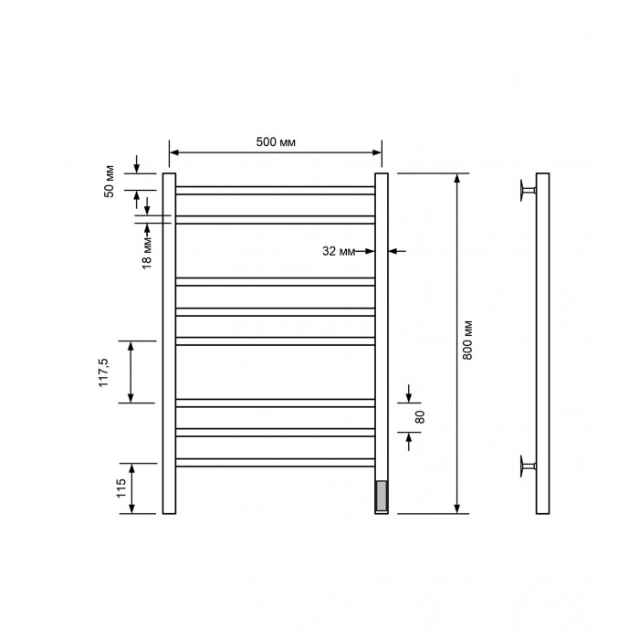 Полотенцесушитель электрический Comfysan Noumi EC-8 80/50, белый 013820 Межосевое расстояние (см) 50 Лесенка окрашенное Белый матовый слева или справа Электрический Россия Полотенцесушитель электрический с/т Comfysan Noumi EC-8 80/50, белый
