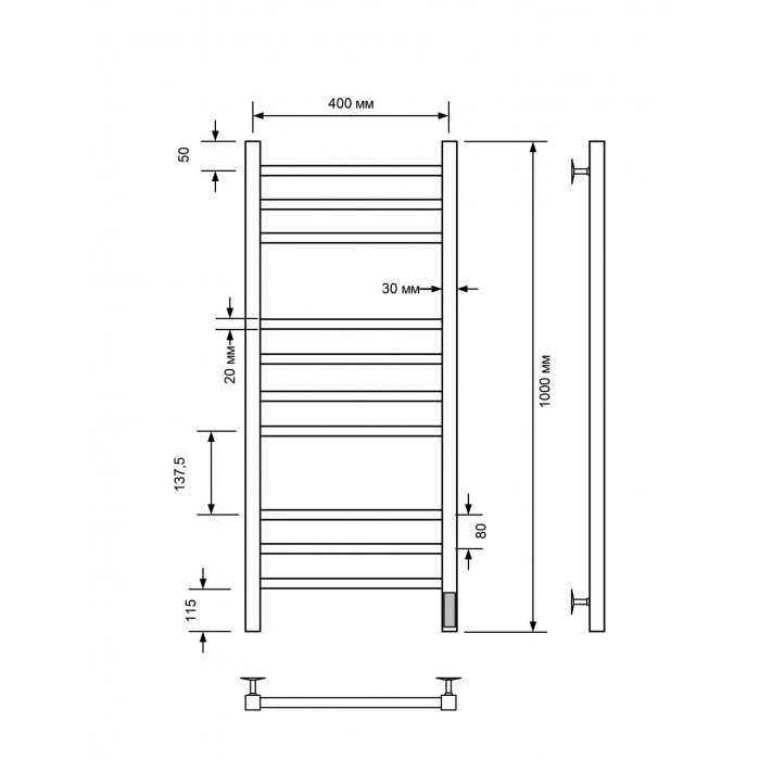 Полотенцесушитель электрический Comfysan Pioli-K EC-10 100/40, черный