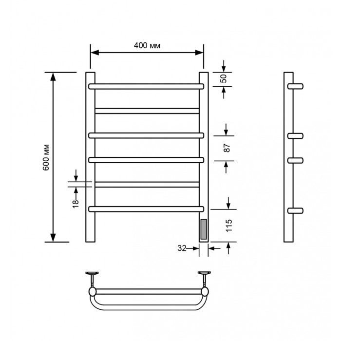 Полотенцесушитель электрический Comfysan Puro EC-6 60/40, хром 012793 Межосевое расстояние (см) 40 Лесенка полированное металлическое Хром слева или справа Электрический Россия Полотенцесушитель электрический с/т Comfysan Puro EC-6 60/40, хром
