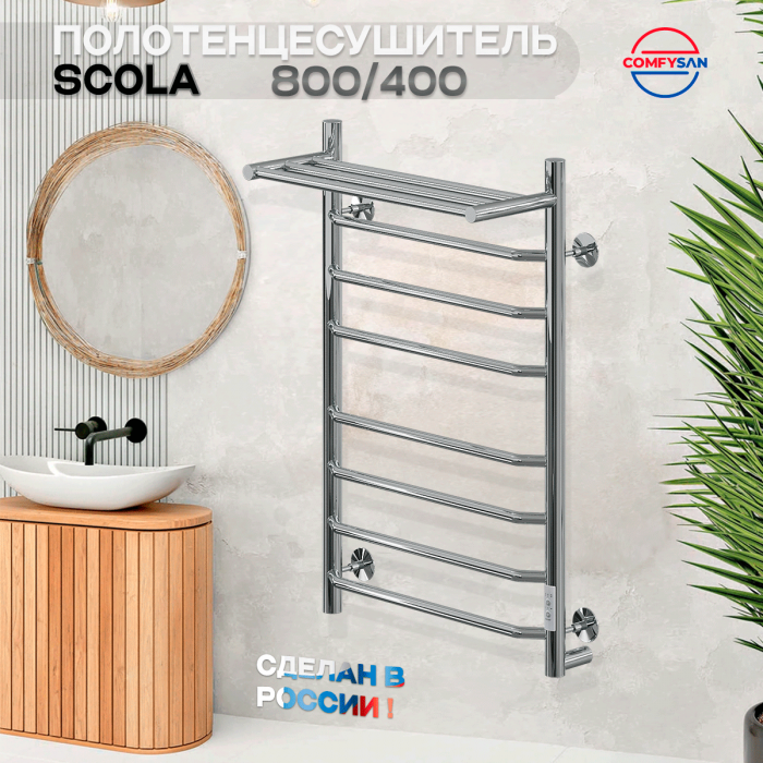 Полотенцесушитель электрический Comfysan Scola EC-8 80/40 с полкой, хром