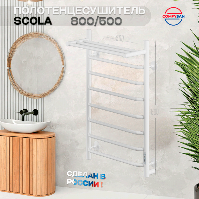 Полотенцесушитель электрический Comfysan Scola EC-8 80/50 с полкой, белый