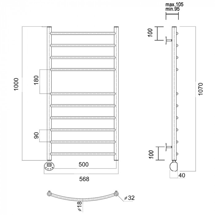 Полотенцесушитель электрический Domoterm Калипсо Калипсо П10 500x1000 EL Хром 4-6 Тэн слева тэн стойка крепления - 4 шт., кран Маевского 1 шт., заглушка -1 шт. Тэн с цифровым терморегулятором полотенцесушители настенные Россия 2 года