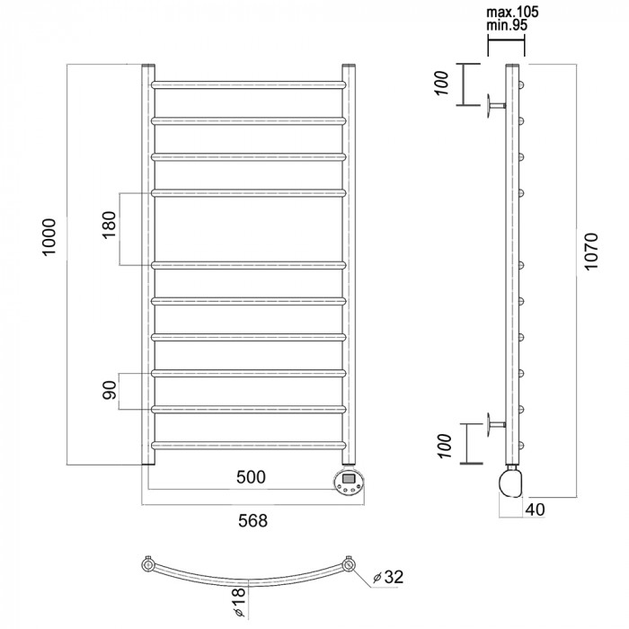 Полотенцесушитель электрический Domoterm Калипсо Калипсо П10 500x1000 ER Хром 4-6 Тэн справа тэн стойка крепления - 4 шт., кран Маевского 1 шт., заглушка -1 шт. Тэн с цифровым терморегулятором полотенцесушители настенные Россия 2 года
