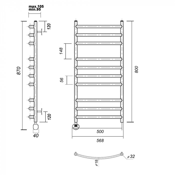 Полотенцесушитель электрический Domoterm Калипсо Калипсо П10 500x800 БЕЛ EL Белый, матовый 3-4-3 Тэн слева тэн стойка крепления - 4 шт., кран Маевского 1 шт., заглушка -1 шт. Тэн с цифровым терморегулятором полотенцесушители настенные Россия 2 года