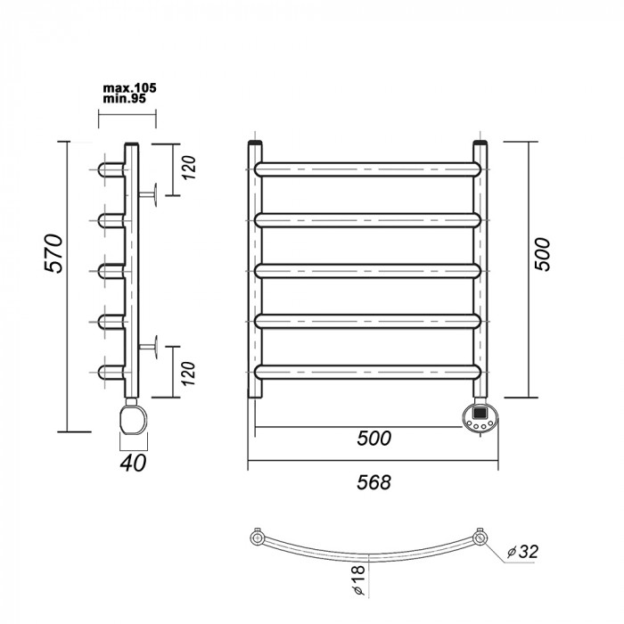 Полотенцесушитель электрический Domoterm Калипсо Калипсо П5 500x500 ER золото золото