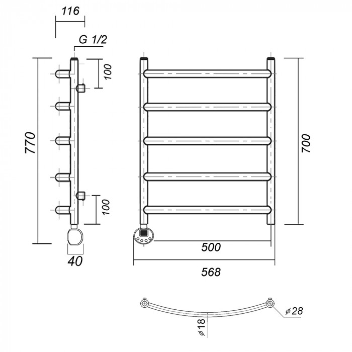 Полотенцесушитель электрический Domoterm Калипсо Калипсо П5 500x700 АБР EL Античная бронза равноудаленная Тэн слева тэн стойка крепления - 4 шт., кран Маевского 1 шт., заглушка -1 шт. Тэн с цифровым терморегулятором полотенцесушители настенные Россия 2 года