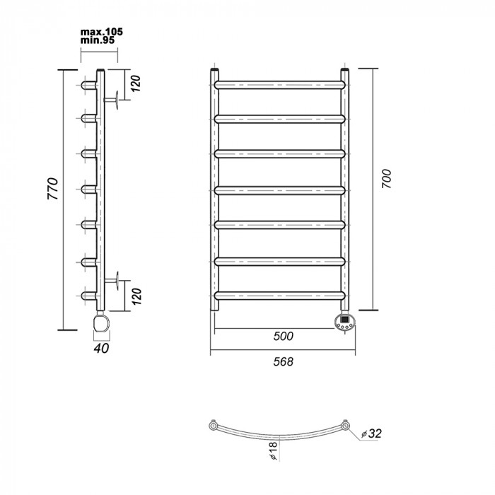 Полотенцесушитель электрический Domoterm Калипсо Калипсо П7 500x700 ЧРН ER Черный, матовый