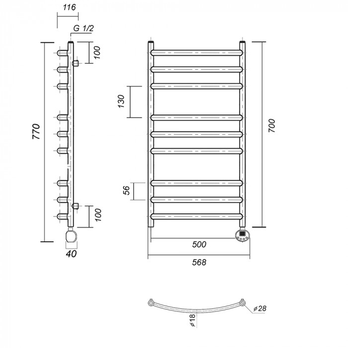 Полотенцесушитель электрический Domoterm Калипсо Калипсо П9 500x700 АБР ER Античная бронза 3-3-3 Тэн справа тэн стойка крепления - 4 шт., кран Маевского 1 шт., заглушка -1 шт. Тэн с цифровым терморегулятором полотенцесушители настенные Россия 2 года