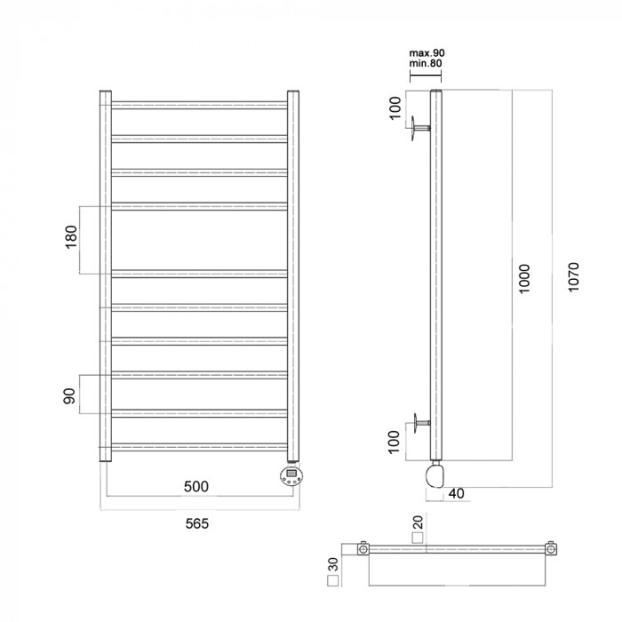 Полотенцесушитель электрический Domoterm Квадро Квадро П10 500х1000 ER Хром 4-6 Тэн справа тэн стойка крепления - 4 шт., кран Маевского 1 шт., заглушка -1 шт. Тэн с цифровым терморегулятором полотенцесушители настенные Россия 2 года