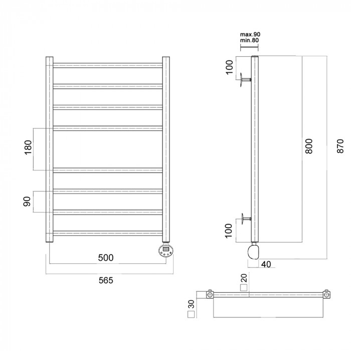 Полотенцесушитель электрический Domoterm Квадро Квадро П8 500х800 ER Хром 4-4 Тэн справа тэн стойка крепления - 4 шт., кран Маевского 1 шт., заглушка -1 шт. Тэн с цифровым терморегулятором полотенцесушители настенные Россия 2 года