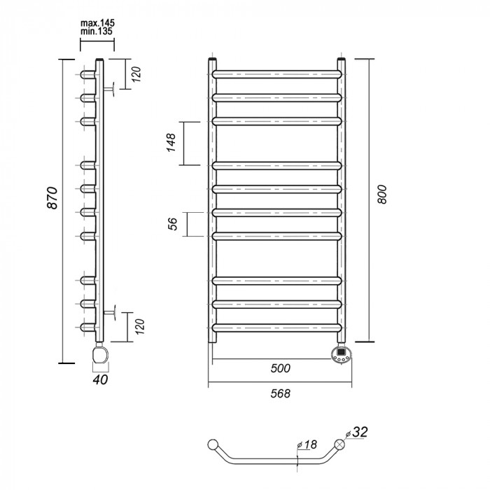 Полотенцесушитель электрический Domoterm Лаура Лаура П10 500x800 ER Хром