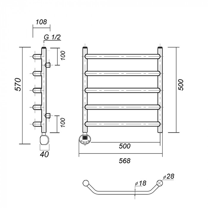 Полотенцесушитель электрический Domoterm Лаура Лаура П5 500x500 АБР EL Античная бронза равноудаленная Тэн слева тэн стойка крепления - 4 шт., кран Маевского 1 шт., заглушка -1 шт. Тэн с цифровым терморегулятором полотенцесушители настенные Россия 2 года