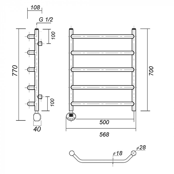 Полотенцесушитель электрический Domoterm Лаура Лаура П5 500x700 АБР EL Античная бронза равноудаленная Тэн слева тэн стойка крепления - 4 шт., кран Маевского 1 шт., заглушка -1 шт. Тэн с цифровым терморегулятором полотенцесушители настенные Россия 2 года