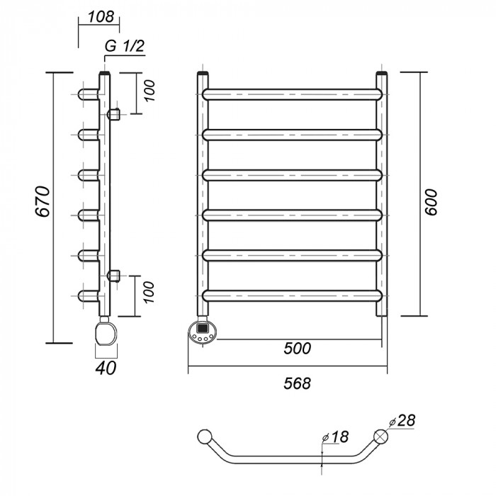 Полотенцесушитель электрический Domoterm Лаура Лаура П6 500x600 АБР EL Античная бронза равноудаленная Тэн слева тэн стойка крепления - 4 шт., кран Маевского 1 шт., заглушка -1 шт. Тэн с цифровым терморегулятором полотенцесушители настенные Россия 2 года