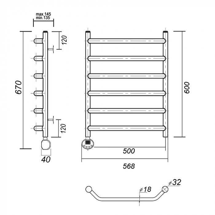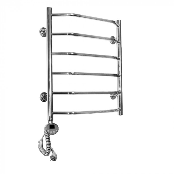 Полотенцесушитель электрический Domoterm Лаура Лаура П6 500x600 EL Хром равноудаленная Тэн слева тэн стойка крепления - 4 шт., кран Маевского 1 шт., заглушка -1 шт. Тэн с цифровым терморегулятором полотенцесушители настенные Россия 2 года