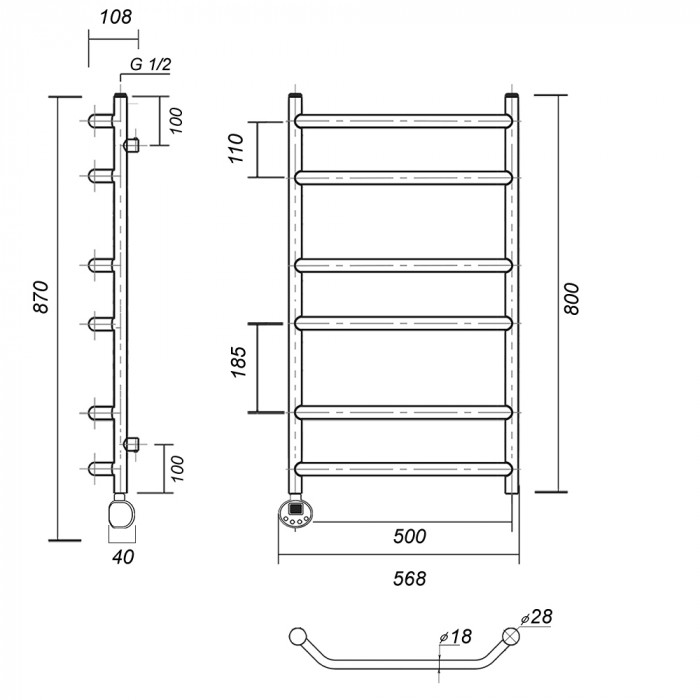 Полотенцесушитель электрический Domoterm Лаура Лаура П6 500x800 АБР EL Античная бронза 2-2-2 Тэн слева тэн стойка крепления - 4 шт., кран Маевского 1 шт., заглушка -1 шт. Тэн с цифровым терморегулятором полотенцесушители настенные Россия 2 года