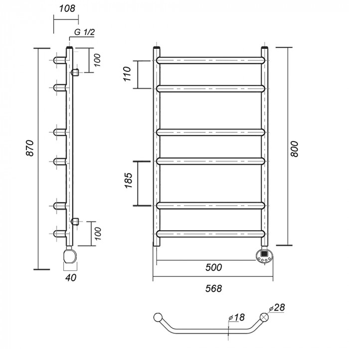 Полотенцесушитель электрический Domoterm Лаура Лаура П6 500x800 АБР ER Античная бронза 2-2-2 Тэн справа тэн стойка крепления - 4 шт., кран Маевского 1 шт., заглушка -1 шт. Тэн с цифровым терморегулятором полотенцесушители настенные Россия 2 года