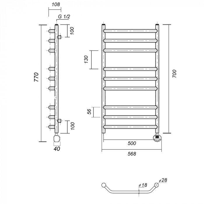Полотенцесушитель электрический Domoterm Лаура Лаура П9 500x700 АБР ER Античная бронза 3-3-3 Тэн справа тэн стойка крепления - 4 шт., кран Маевского 1 шт., заглушка -1 шт. Тэн с цифровым терморегулятором полотенцесушители настенные Россия 2 года
